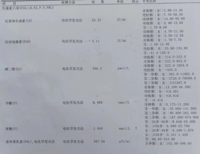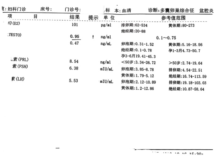 当时吃了些二甲双胍、来曲唑促排,效果甚微。这种情况已经没法安心工作,于是请假回家休养,同时尝试各种常规治疗,半个多月激素水平有所下降,本来以为控制住了,没想到一停药又反弹,月经还是不来,这让我感到绝望。